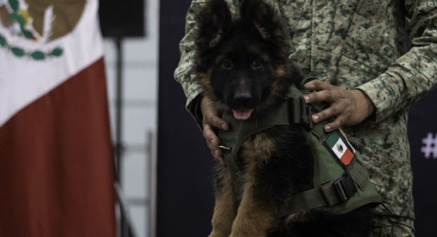 El Ejército mexicano presentó este miércoles a Arkadas, un cachorro de raza pastor alemán donado por el pueblo de Turquía en agradecimiento a la ayuda humanitaria del Gobierno de México tras los terremotos del país euroasiático.