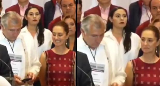 El video fue compartido por parte de la cuenta @periodistafrg en el cual se puede apreciar como a medio evento, mientras todos se encontraban de pie, Adán Augusto estaba checando su teléfono móvil sin saber que a un costado los ojos de Sheinbaum estarían viendo momentaneamente.