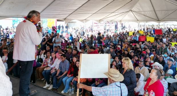 “Los grandes acaparadores de tierra siguen creyendo que pueden seguir abusando del oprimido, pero esto ya cambio”, afirmó al garantizar que la Transformación en México va a continuar y con ella se mantienen y fortalecen todos los Programas Sociales, especialmente la Pensión Universal para Adultos Mayores.