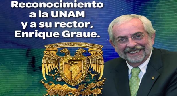 "Es un reconocimiento al rector Enrique Graue cabeza de la UNAM en los últimos 8 años", dijo. Y destacó el papel de la universidad durante la pandemia del covid.