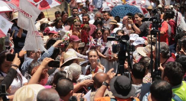 Durante sus mítines en la Ciudad de México, se ha visto el despliegue de enormes lonas, cientos de sillas y camiones que llevan a la gente a las llamadas asambleas de Claudia Sheinbaum.