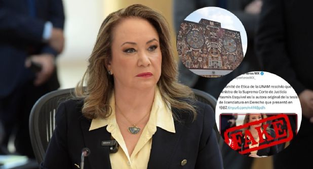 En el tuit se puede observar que la cuenta oficial de la UNAM menciona que se trata de una noticia falsa. La noticia por parte del portal Reporteros MX y que se compartió en redes sociales menciona que el Comité de Ética resolvió que la ministra Yasmín Esquivel es la autora original de la tesis de licenciatura en derecho que se presentó en 1987.