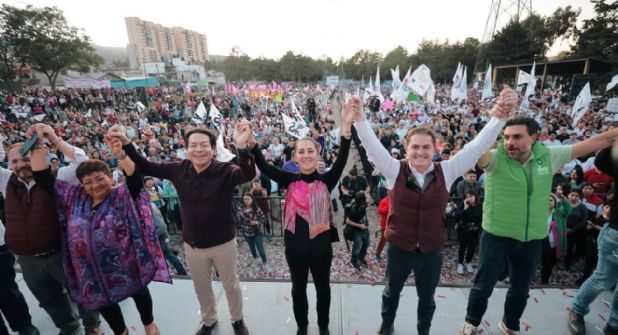 A seis días de que acaben las precampañas, en el mitin de Claudia Sheinbaum acudieron los dirigentes nacional y capitalino de Morena, Mario Delgado y Sebastián Ramírez, así como el senador y el diputado local del PVEM, Manuel Velasco y Jesús Sesma, respectivamente.