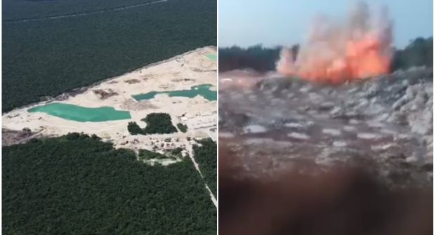 Integrantes del colectivo Sélvame del Tren, que se oponían a la construcción del tren debido a los daños que ocasionaría al medio ambiente, mostraron que desde 2023, en los trabajos para el Tramo 5 de la obra se empleaban explosivos; en esa sólo el ejército y sus contratistas tenían acceso.