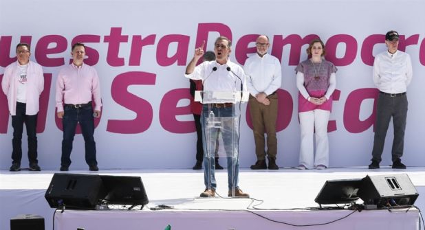 En su discurso, el exconsejero electoral señaló que son tres los logros democráticos que están en riesgo y que vamos a defender: