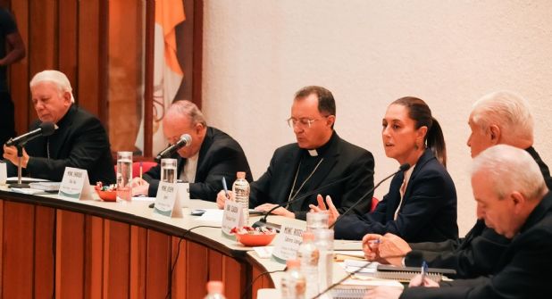 “Uno de los temas, no solo pero fue uno de los temas y mi respuesta es la atención a las causas y la cero impunidad. Aun cuando evidentemente vivimos en un Estado laico que respeta todas las religiones, es importante también que las religiones, las iglesias en su espacio de actuación puedan apoyar también en lo que tiene que ver con atención a las causas”, dijo Claudia Sheinbaum.