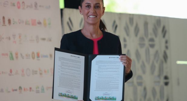 Justo antes de firmar el compromiso, Claudia Sheinbaum se detuvo para decir que las niñas pueden ser lo que quieran.