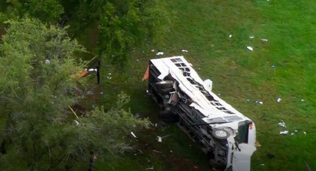 De acuerdo con la Patrulla de Carreteras de Florida (FHP, por sus siglas en inglés), el accidente ocurrió por la mañana cerca de Ocala, al norte de Tampa, cuando el autobús chocó de lado con una camioneta provocando que el vehículo saliera de la carretera y terminara volcado, señalo la FHP.