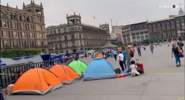 A las 2 ya se veía una cuarta parte del Zócalo prácticamente ocupada por las casas de campañas o lonas y a algunos maestros acostados. Frente a Palacio Nacional había un templete y desde ahí se anunció que los maestros pertenecientes a la CNTE iban a dejar de dar clases para hacer visibles sus demandas.