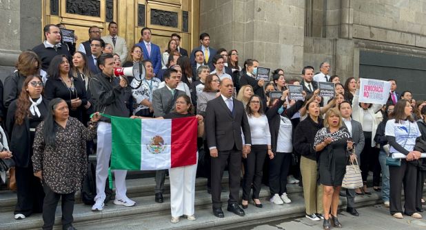 Esta protesta en las escalinatas de la Corte es inédita. Secretarias, trabajadoras y trabajadores de base, algunos directores de área y demás trabajadores la llevarán a cabo todos los días que dure el paro de labores del Poder Judicial en punto de las 8:30 horas, sin unirse al paro y previo a su horario laboral.