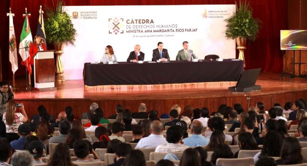 En lo que fue su tercera visita al estado de Coahuila, la ministra la ministra felicitó al rector Octavio Pimentel Martínez y a la Dra. Magda Robles, titular de la defensoría de Derechos Universitarios por su vocación en la promoción y defensa de los derechos humanos.