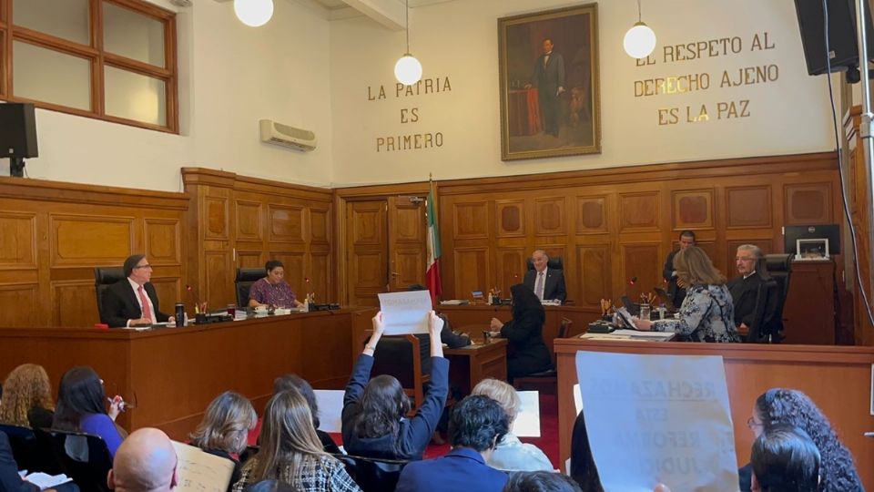 Posteriormente, trabajadores que se oponen a la reforma judicial también acudieron a la sesión y Batres pidió que se les desalojara, lo que fue rechazado por el presidente de la Segunda Sala, ministro Alberto Pérez Dayán, quien les expresó su solidaridad y dijo a Batres que tenía las facultades para permitirles su manifestación.