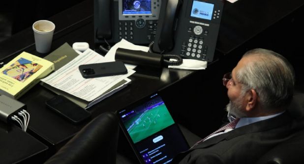 Durante la comparecencia del secretario de Hacienda, Édgar Amador Zamora, en el Senado de la República, el senador Adán Augusto López Hernández fue captado observando un partido de fútbol desde su curul.