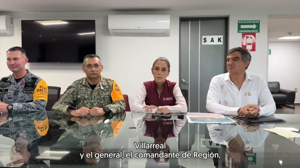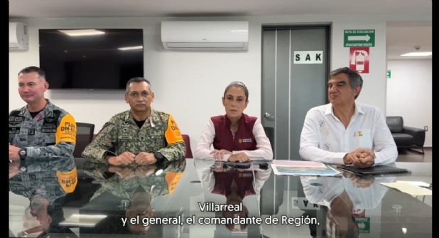 Durante el monitoreo, la Jefa del Ejecutivo Federal estuvo acompañada por el gobernador Américo Villarreal, el general de División de Estado Mayor, Juan José Gómez Ruiz, comandante de la IV Región Militar, y el coordinador estatal de la Guardia Nacional, Jesús Adolfo Amparán Hernández.