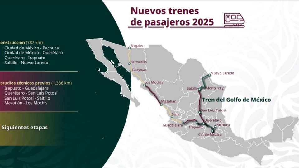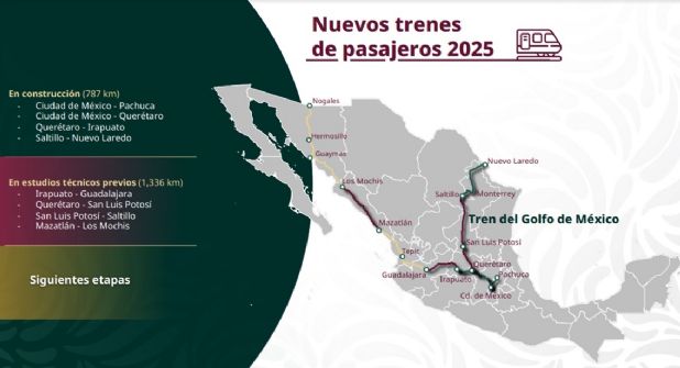 El gobierno de México, a través de las Secretarías de Infraestructura, Comunicaciones y Transportes (SICT) y de Desarrollo Agrario, Territorial y Urbano (Sedatu), informó que, el 66 por ciento de los trenes de pasajeros se construye sobre el derecho de vía existente.