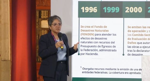 La secretaria de Anticorrupción y Buen Gobierno, Raquel Buenrostro Sánchez, explicó el origen del Fondo de Desastres Naturales (Fonden) en 1996 y los motivos de su desaparición por ineficiencia.