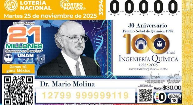 En este marco, la directora resaltó que es motivo de orgullo nacional celebrar con el Sorteo Mayor 3994 la conmemoración del Centenario de la Facultad de Química de la UNAM, así como el 30º aniversario del Premio Nobel al Dr. Mario Molina, un mexicano que cambió la historia de la ciencia y un homenaje que coincide con la visión de la presidenta de apostar por la ciencia, la tecnología y el talento como motores del desarrollo nacional.