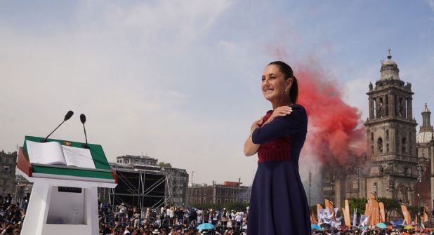 Asistentes gritan a la presidenta “no estás sola, no estás sola” y “es un honor estar con Claudia hoy”.