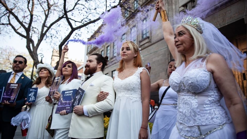 Vestidas de novias, mujeres de 28 organizaciones de la sociedad civil, entre ellas del Colectivo 992 realizaron una protesta en la Suprema Corte de Justicia de la Nación (SCJN) para exigir mecanismos que protejan a las mujeres víctimas de violencia vicaria.
