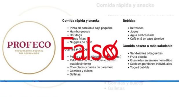 La Profeco desmintió durante este domingo que una imagen con una nueva “lista de alimentos que se pueden ingresar a los cines” en México, la cual fue difundida en redes sociales como X con el logo de la Procuraduría Federal del Consumidor (Profeco).