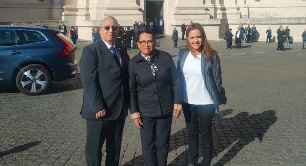 En sus redes sociales, publicó una foto en la que se observa a Rodríguez junto a Alberto Barranco, embajador de México ante el Vaticano, y Clara Luz Flores, titular de la unidad de asuntos religiosos y excandidata de Morena por Nuevo León.