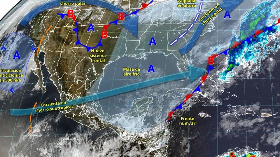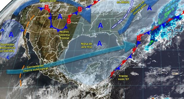 El Servicio Meteorológico Nacional informó que un nuevo sistema frontal se aproxima a la frontera norte de México, ocasionando fuertes rachas de viento en Chihuahua, Coahuila y Nuevo León. Además que el ingreso de humedad del océano Pacífico y Golfo de México, generará lluvias e intervalos de chubascos en Oaxaca y Chiapas, así como lluvias aisladas en Guerrero y Michoacán.