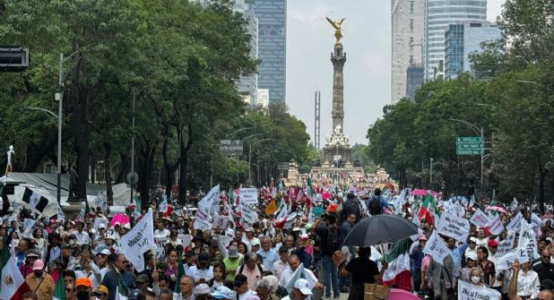“El pueblo se alza en contra de esta farsa… no votar, no votar”, fueron las consignas que manifestantes lanzaron en su caminar del Ángel de la Independencia al monumento a la Revolución.