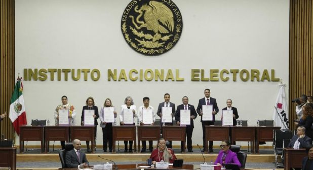 La entrega de constancias de ministras y ministros de la SCJN en el INE se llevó a cabo en el orden siguiente: