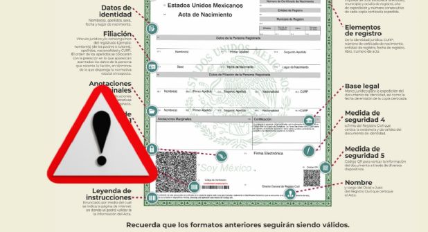 En este sentido, a partir de 2016 se implementó en México un formato único para la expedición y certificación del acta de nacimiento, el cual homologa el diseño, características y contenido de este documento en todo el país, el cual es un documento de fácil lectura y limpio en su diseño con sus datos y medidas de seguridad para combatir la suplantación de identidad.