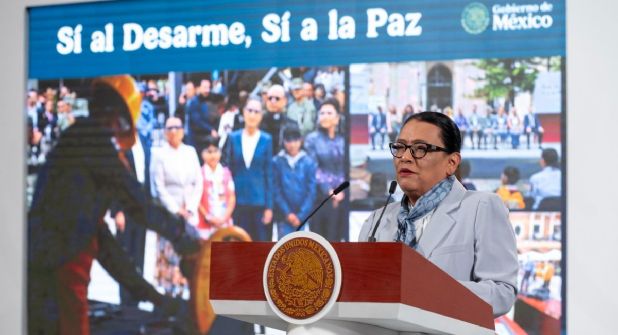 La titular de Gobernación reiteró el llamado a la población a entregar sus armas de manera voluntaria y anónima a cambio de un apoyo económico. Señaló que en esta iniciativa también han participado niñas y niños, quienes han intercambiado 4 mil 585 juguetes bélicos por juguetes educativos.