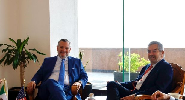 La cancillería compartió a través de su cuenta X una serie de fotos donde se ve al senador Cruz junto al embajador de Estados Unidos en México, Ronald Johnson, en dicho encuentro también participaron Roberto Velasco, jefe de Unidad para América del Norte, y Cristina Planter, directora general de Estrategia Diplomática para América del Norte, por parte de México y Omri Ceren, asesor principal de Políticas y Comunicación del senador republicano.
