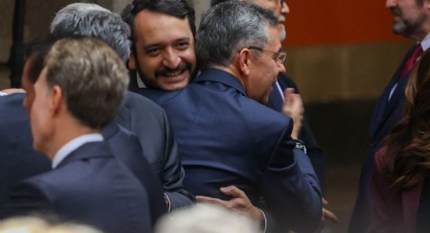 El evento realizado en Palacio Nacional a donde asistieron unas 300 personas, entre ellos, los nueve ministros de la Suprema Corte de Justicia de la Nación, encabezados por Hugo Aguilar Ortiz. También estuvieron presentes integrantes del gabinete federal, entre ellos Omar García Harfuch, de Seguridad; Rosa Icela Rodríguez, de Gobernación; y Ricardo Tevilla, de Defensa Nacional, así como gobernadores del país.