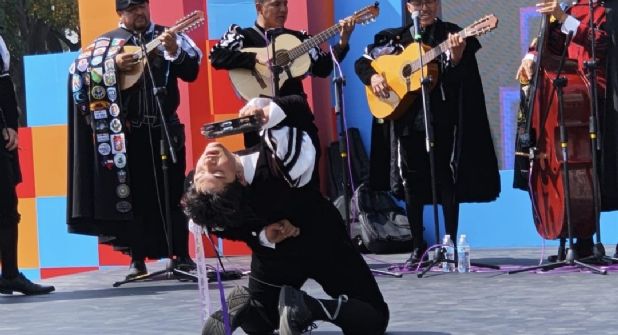 Una estudiantina que evoca las callejoneadas en Guanajuato llegó hasta el Monumento a la Madre, sede del evento en Ciudad de México, como una muestra de la cultura e historia del estado.