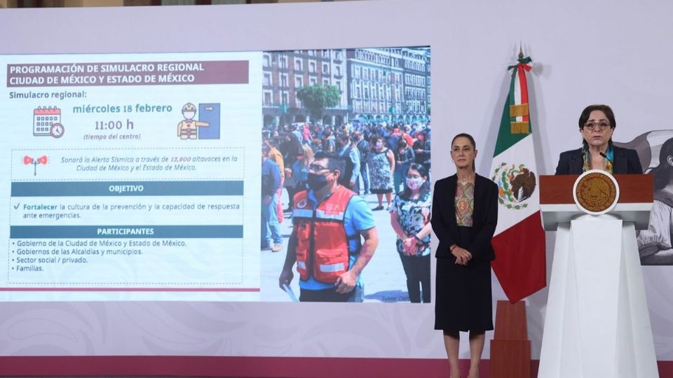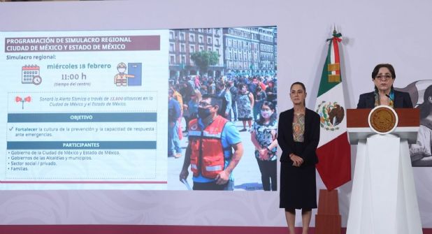 Por su parte, la coordinadora nacional de Protección Civil, Laura Velázquez, informó que el miércoles 18 de febrero se realizará el primer simulacro regional en la Ciudad de México y el Estado de México; a las 11:00 horas sonarán cerca de 13,900 altavoces en el Valle de México.