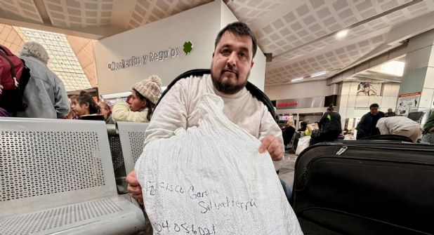 Minutos después le informaron que su viaje había sido cancelado. Desde entonces duerme y descansa en la misma sala. La noche del domingo la pasó entre el piso y las bancas. Compró una manta negra en una tienda de regalos de la terminal por 250 pesos para protegerse del frío.