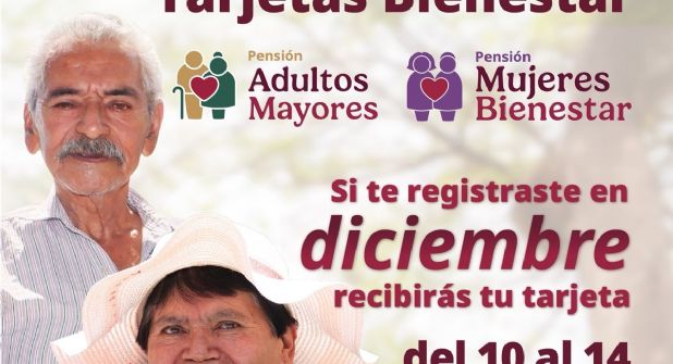 A partir de este martes 10 de febrero arranca la entrega de tarjetas de la Pensión del Bienestar para Adultos Mayores y del programa Pensión Mujeres con Bienestar, informó la secretaria Ariadna Montiel. El proceso concluirá el 14 de febrero y está dirigido a quienes se registraron en durante el mes de diciembre.