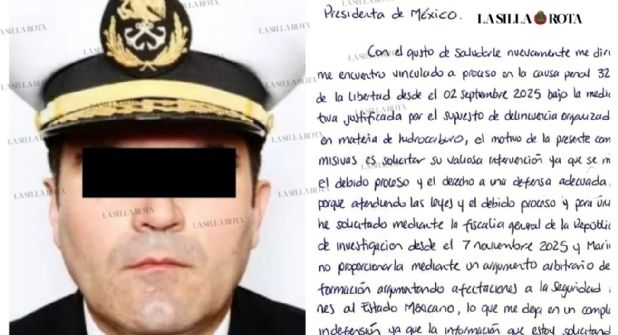 En la misiva, el marino asegura que se vulneran su derecho a una defensa adecuada. "Mi defensa he solicitado mediante la Fiscalía General de la República, diversos actos de investigación desde el 7 noviembre 2025 y Marina pretende el no proporcionarla mediante un argumento arbitrario de reserva de información, argumentando afectaciones a la seguridad nacional y afectaciones al Estado Mexicano, lo que me deja en un completo estado de indefensión", señala.