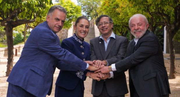La presidenta de México, Claudia Sheinbaum y sus homólogos de Brasil, Luiz Inácio Lula da Silva; de Colombia, Gustavo Petro y de Uruguay, Yamandú Orsi, cerraron filas por un frente progresista en América Latina, ante los desafíos que la región enfrenta durante la IV Cumbre en Defensa por la Democracia, inaugurada por el presidente del gobierno español, Pedro Sánchez.