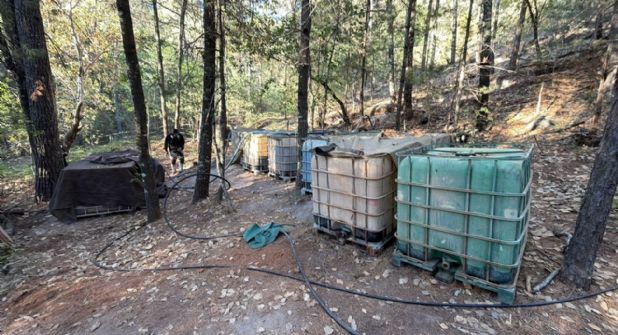 En un primer campamento y laboratorio, un área abierta de aproximadamente 850 metros cuadrados, dividido en 5 áreas:, se localizó lo siguiente: