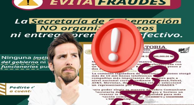Como parte de estos esquemas, los delincuentes difunden supuestas “convocatorias” o avisos donde aseguran que una persona resultó ganadora de grandes sumas de dinero, incluso mencionando cantidades elevadas.