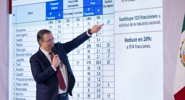 En conferencia desde Palacio Nacional, señaló que las importaciones de ciertos productos han tenido incrementos considerables, en lo que va del año: acero, 12.4%; prendas de vestir, 20.8%; calzado, 22.3%; mientras el sector automotriz aumento 34%, por lo que la medida busca defender el empleo y fortalecer industrias estratégicas para la economía nacional.