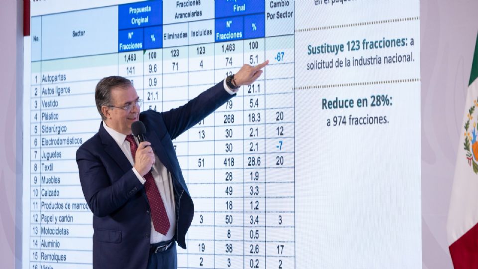 El secretario de Economía, Marcelo Ebrard, explicó el paquete arancelario enviado por la presidenta Claudia Sheinbaum y aprobado por el Congreso de México, tiene el objetivo central de proteger alrededor de 350 mil empleos.