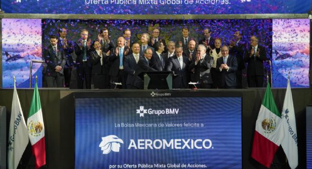 El pasado 6 de noviembre, Aeroméxico comenzó a cotizar en la BMV y en la New York Stock Exchange (NYSE) bajo la clave de pizarra "AERO".