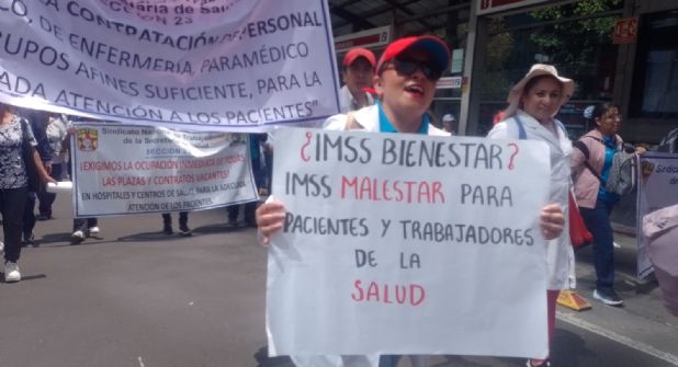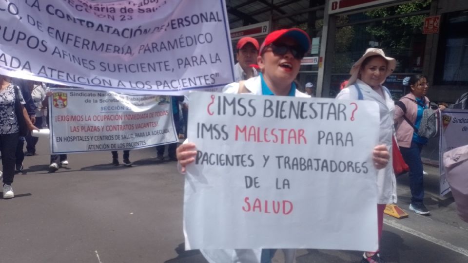Al grito de "IMSS-Bienestar fracaso nacional" el personal sanitario señaló las pésimas condiciones en las que están trabajando.