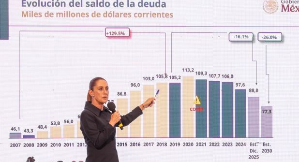 En materia de deuda, expuso Quiroz, se ha registrado un progreso significativo que muestra una mayor disciplina fiscal por parte de la administración de Claudia Sheinbaum Pardo, con el objetivo de preservar la calificación crediticia de la nota soberana, una vez que, en noviembre de 2024, Moody’s y HR Ratings modificaron su perspectiva de estable a negativa, citando falta de eficiencia en el ejercicio del gasto público.