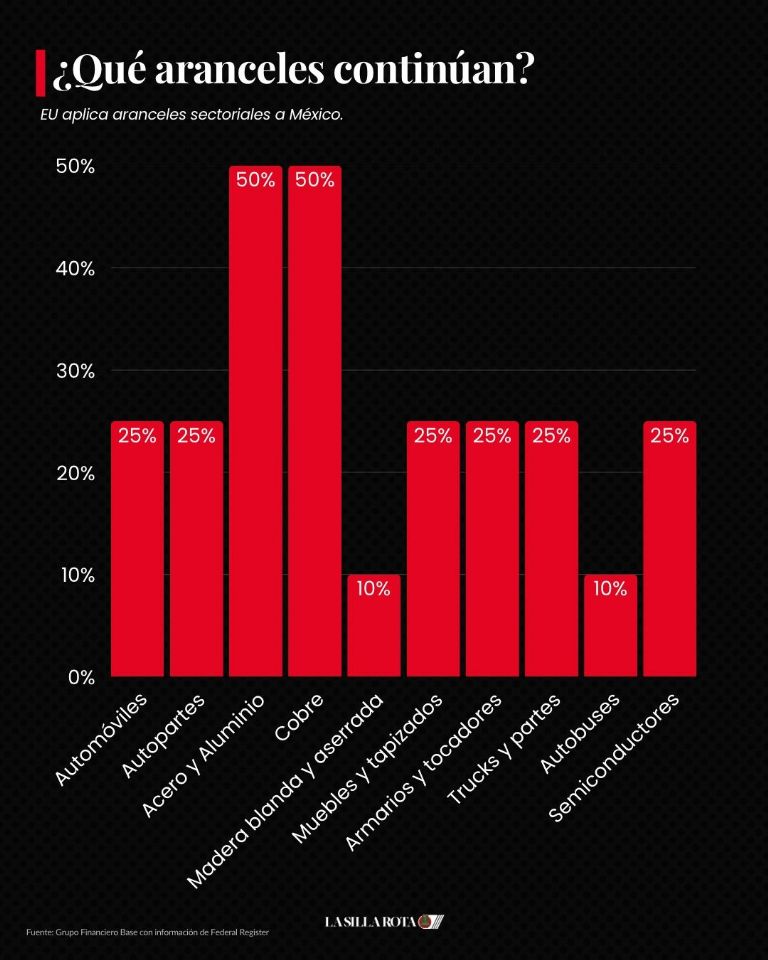 Contexto: los aranceles de la Ley de Facultades Económicas Internacionales de Emergencia (IEEPA) son impuestos adicionales que Estados Unidos impuso en 2025, principalmente un 25% a productos mexicanos (con excepciones, pero con una pausa temporal anunciada), 35% a Canadá y 10% a China, para presionar en temas de migración y fentanilo, afectando bienes que no califican bajo el T-MEC.