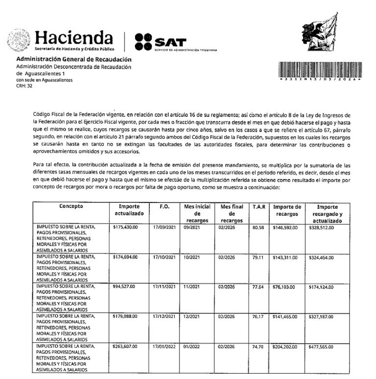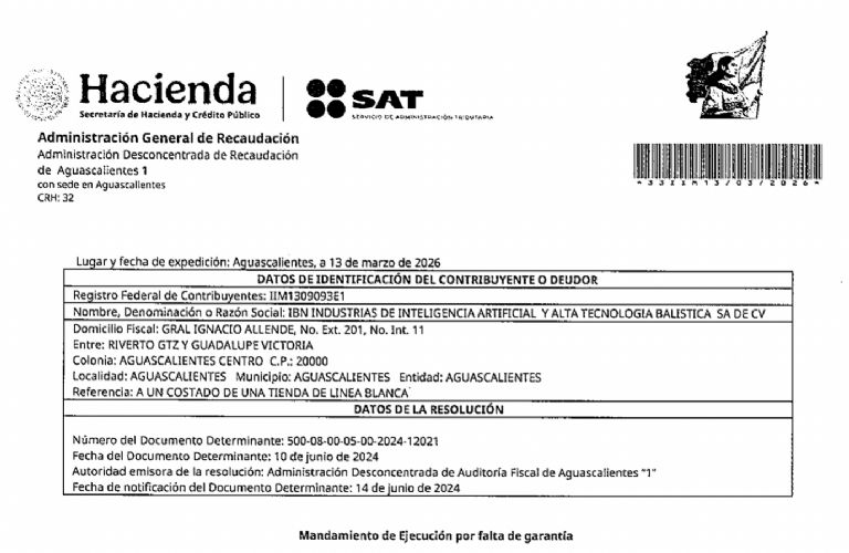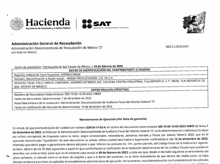 Al igual que en el caso de Argos, la empresa decidió litigar el adeudo sin respaldarlo. El resultado fue el mismo: la deuda siguió creciendo hasta que el SAT emitió un mandamiento de ejecución el 13 de marzo de 2026.