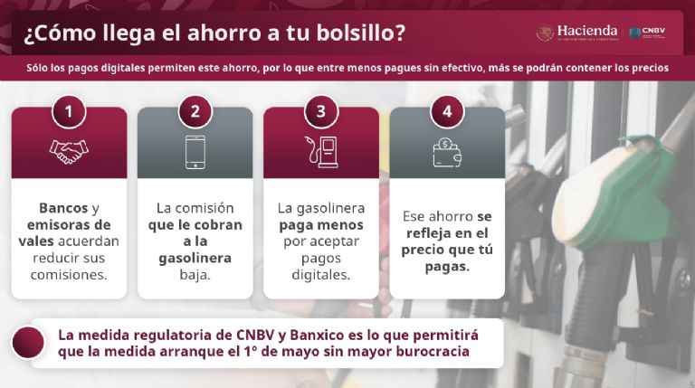 Añadió que los pagos por medios electrónicos ayudan a la trazabilidad, en donde el gobierno puede saber dónde compraron esa gasolina, a cuánto se vendió, cuánto se facturó, pero el consumidor tendrá que usar medios electrónicos al pagar.