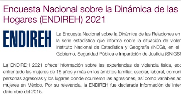 Un tema que lamentablemente se encuentra presente en la actualidad es el de la violencia existente en diversos planos contra las mujeres, como una expresión de la asimetría social histórica que vulnera sus derechos, con menoscabo a las capacidades de agencia, lo que redunda en un estado de subordinación. En este contexto, el INEGI realiza la Encuesta Nacional sobre la Dinámica de las Relaciones en los Hogares (ENDIREH), que ha sido aplicada en los años 2003, 2006, 2011, 2016, y cuyos resultados más recientes, correspondientes a 2021, fueron publicados el pasado 30 de agosto del año en curso.