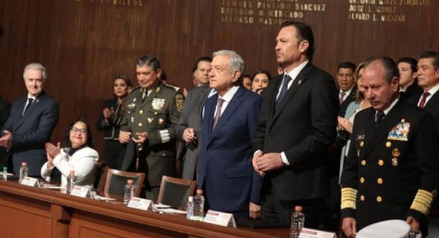 Del otro poder: Preside la Cámara de Diputados un legislador de oposición, el panista Santiago Creel, al que hicieron un abucheo morenista por impedir que la banda militar entrara a la sala de Sesiones de la Cámara de Diputados en el inicio del segundo periodo de sesiones de esta Legislatura el 2 de febrero, siguiendo los estatutos que rigen estos protocolos.